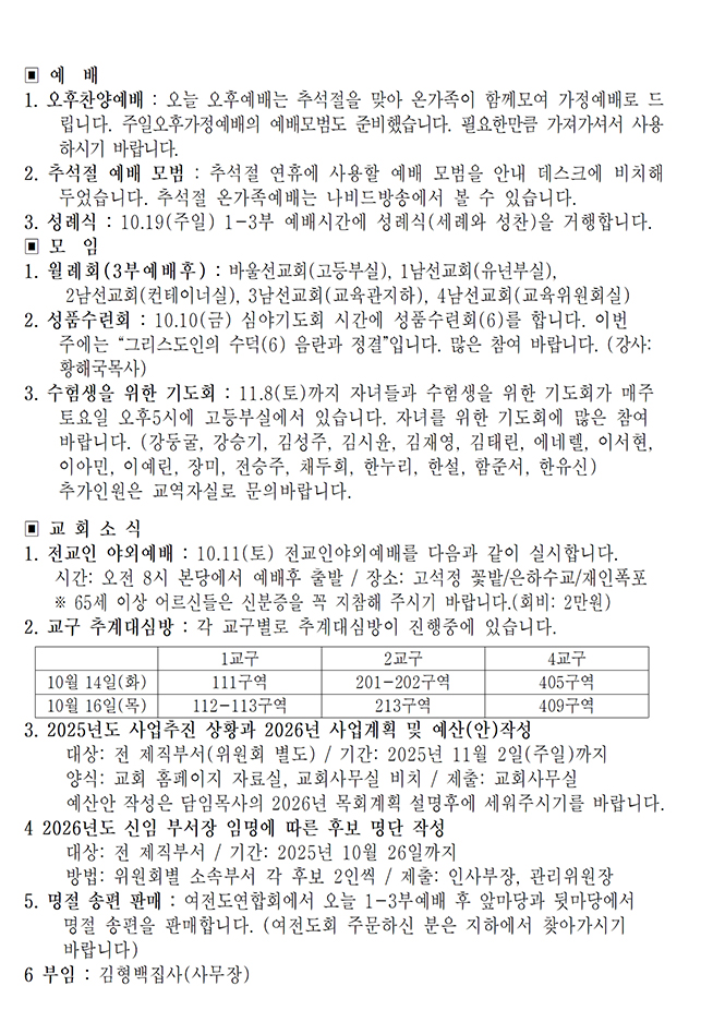 교회소식입니다.(10월 5일)